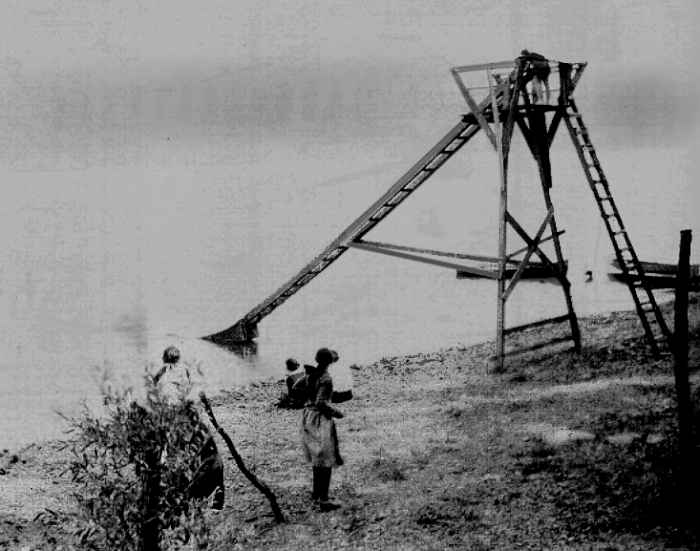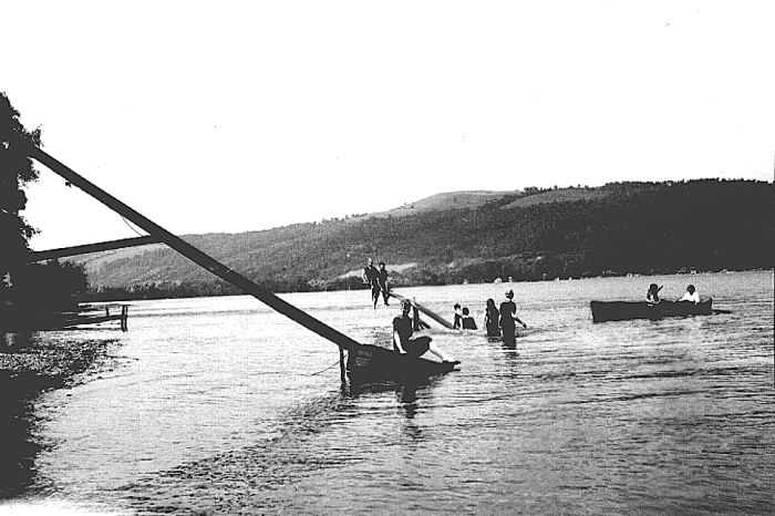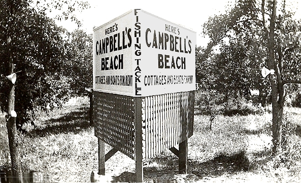 FOR MORE PHOTOS CLICK HERE A LIGHTED SIGN ANNOUNCED THAT YOU HAD ARRIVED ![]() THE CAMPBELL FAMILY, AROUND 1920 Left to right: Grace, Carrie, Tom and Harold ![]() GEORGE AND CARRIE CAMPBELL HALL ![]() THE SUNSET COTTAGE Low water, showing the sandbar and a barrier to protect the porch from ice Later the porch was screened in, as were the porches of all of the cottages ![]() WATER SPORTS A slide which ended in the water, a water see-saw and a boat ride. ![]() THE SLIDE A ride on a wooden sled ended by skidding across the water ![]() |
