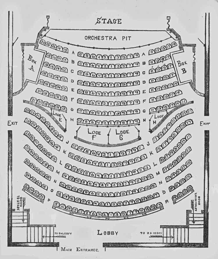 THE SHEPARD OPERA HOUSE SEATING CHART - FROM VOL. 1, NO. 4 OF "THE OPERA GLASS" (undated)