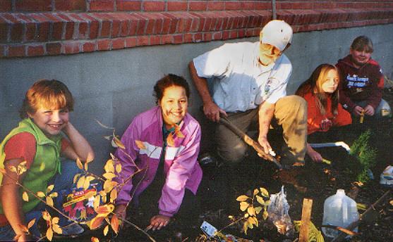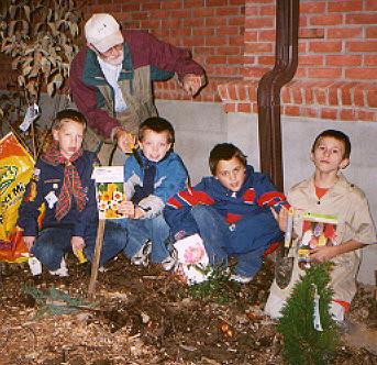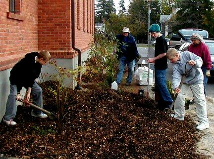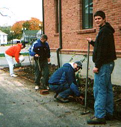 Lyle Conrad developed a plan for plantings along the South side of our new addition. He solicitated help from the Master Gardeners, a group affiliated with Cornell Cooperative Extention. Also helping to implement the plan were members of the Baptist Youth Group, Junior Troop 590 Girl Scouts, Pack 44 Webelos Scouts, and Troop 44 Boy Scouts. |